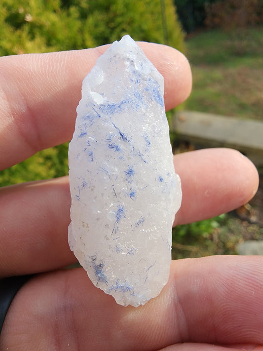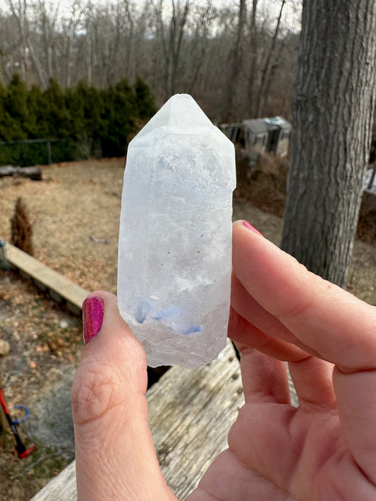 Quartz Point with Dumortierite Inclusions from Brazil