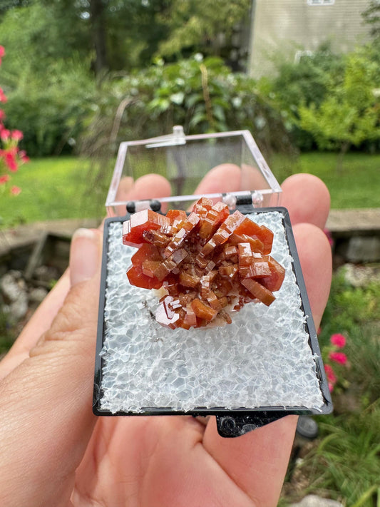 Bright Red Vanadinite Crystals on Matrix from Morocco