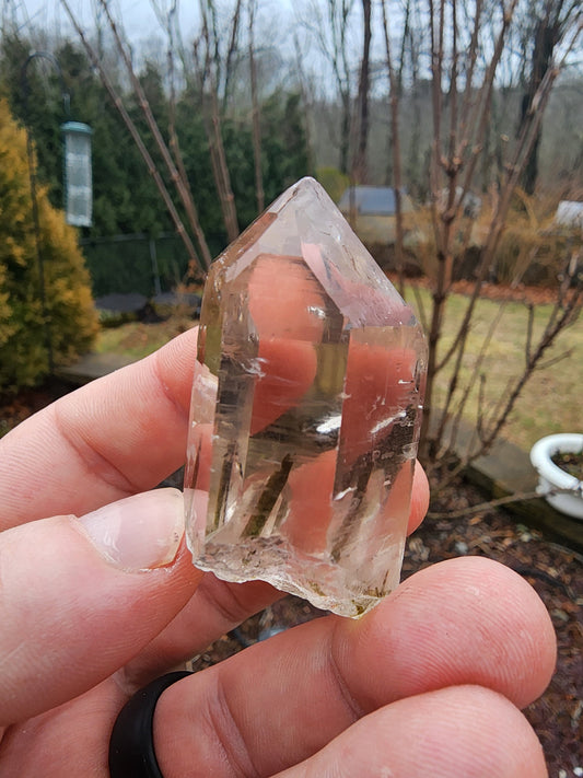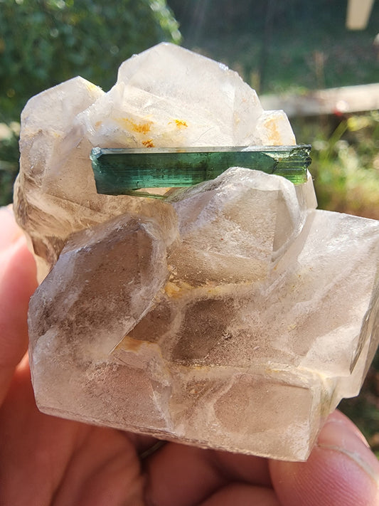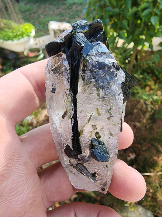 Green Tourmaline in Terminated Crystal Quartz from Minas Gerais, Brazil