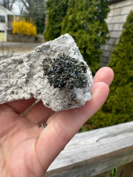 Iridescent Marcasite Crystals with Calcite from Linwood Mine Iowa USA
