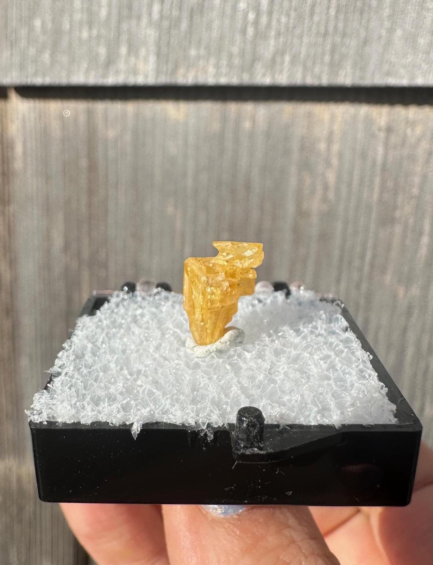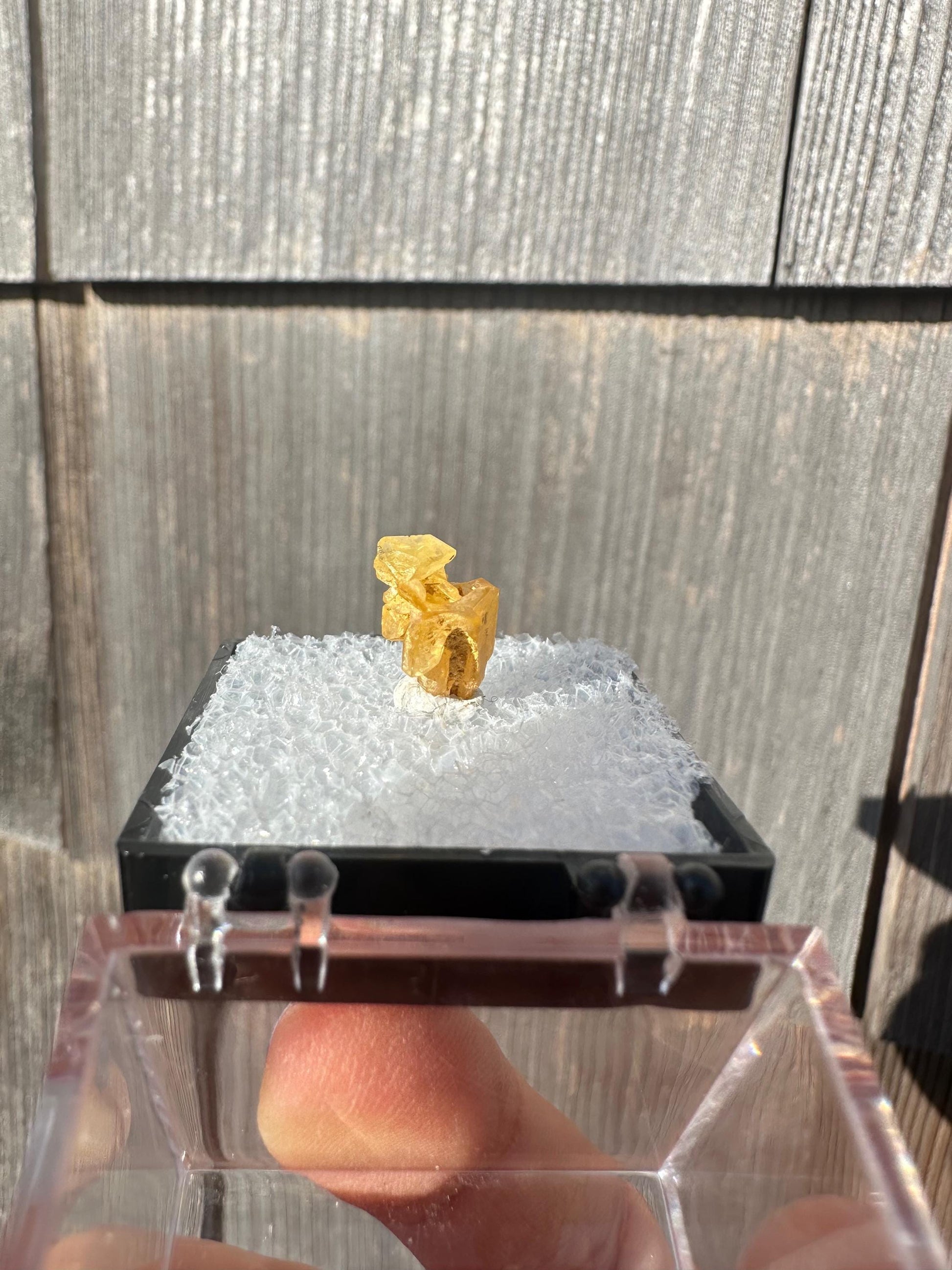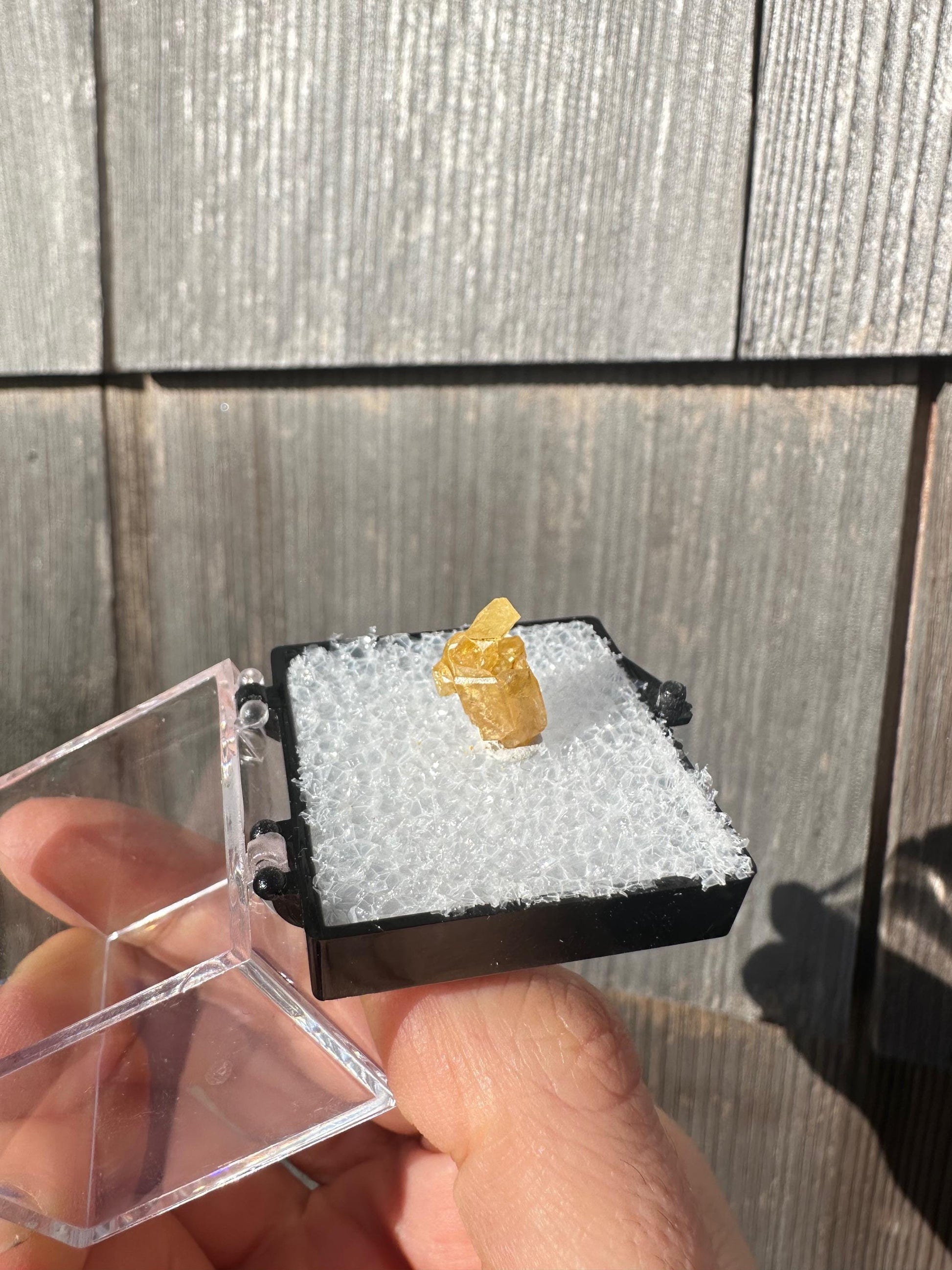 A lustrous, hoppered gem yellow mimetite crystal from Hay Yai District, Songkula Province, Thailand.